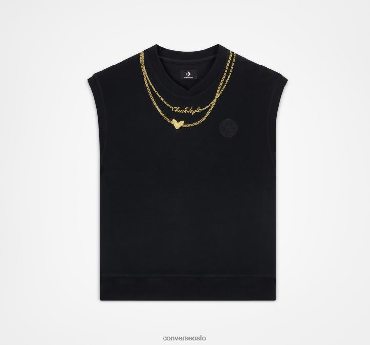 Fullfør din tilfeldig kule dato -nattutseende med denne broderte genservesten. Med brodering av kjede-hals-stil med en hjerte- og Chuck Taylor-logo for å holde den klassisk. I tillegg tilbyr den ribbete nakken og hemmen enestående stil.