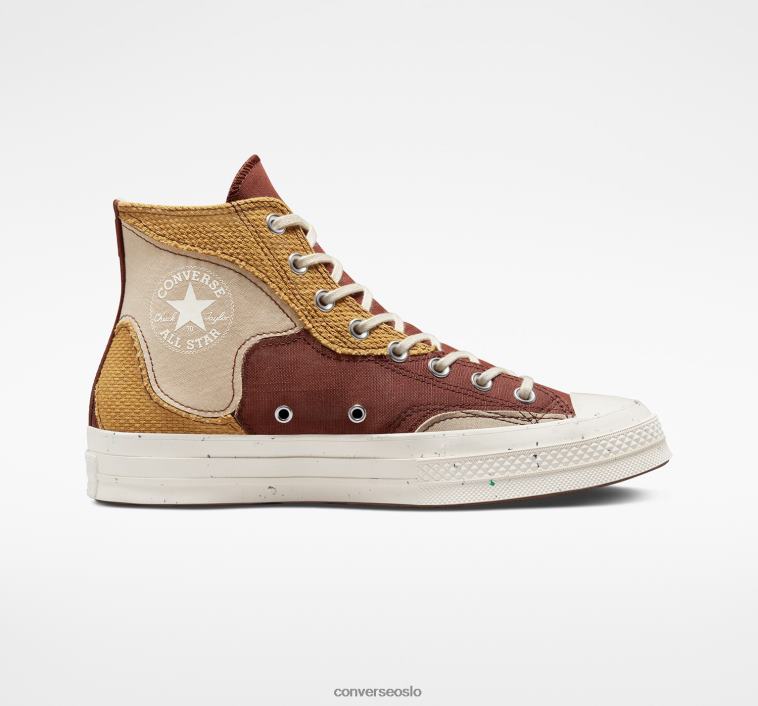 Premium Chuck 70 håndverk sitt siste utseende i et design som holder planeten i tankene. Lekne bølger av elementært, jordtonet bomulls-lerret kommer sammen for et strukturert, lagdelt utseende for å skape illusjonen av bevegelse. Gummirester fra produksjonsprosessen gir mellomsålen et unikt, flekkete utseende. Ferdig med bomullsfôr.